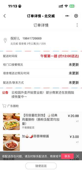 女寝3号楼 云校园外卖拿上来